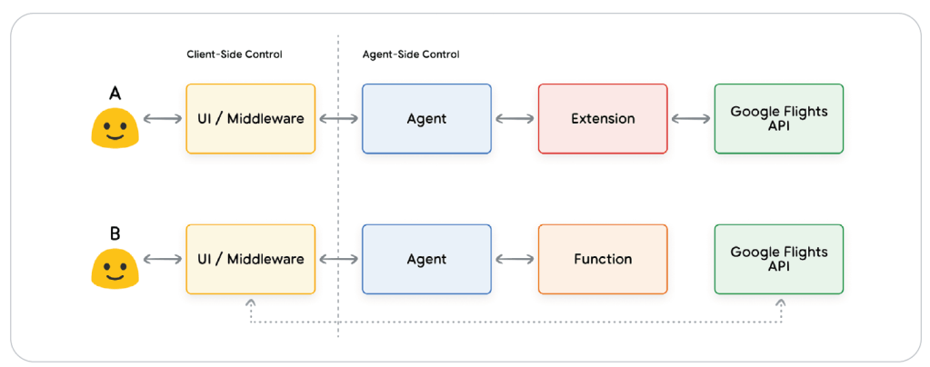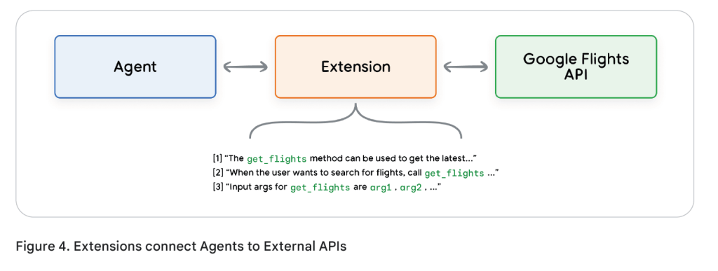 - Extensions – เครื่องมือที่ช่วยให้ AI เชื่อมต่อกับ API เช่น Google Flights เพื่อดึงข้อมูลการเดินทาง