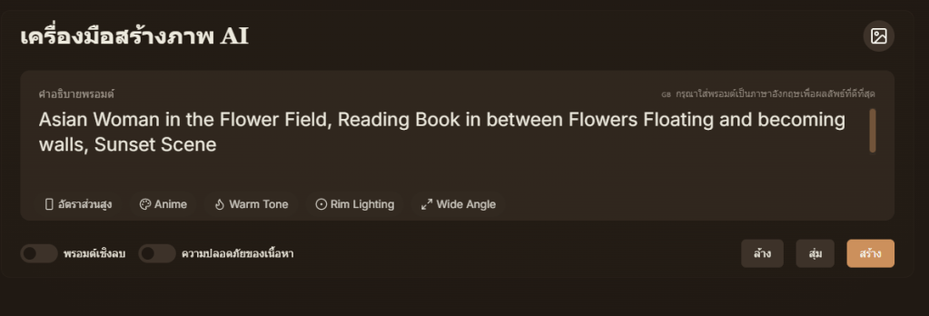 - ไม่กำหนดโทนสี AI จะเลือกสีตามที่คิดว่าเหมาะสม