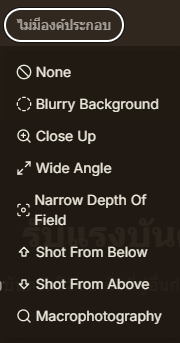 - ไม่กำหนดองค์ประกอบพิเศษ AI จะเลือกมุมมองตามความเหมาะสม